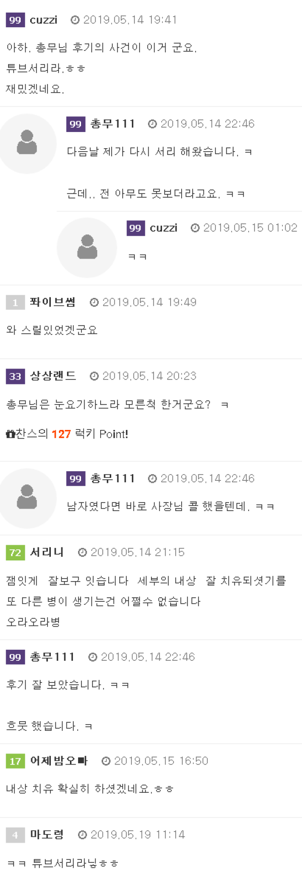 아침에 일어나서 여느 회원님들과 같이 모닝~ 빰빰ㅋㅋㅋ음... 개인적인 취향으로 파트너 체인지 요청을 하게 되었어요 ..파트너에게 미안하지만 난.. 즐겨야해서 시간이 없으...ㅋㅋㅋ두번 밖에 안갔지만 제 생각으로는 바로바로 말하는게 좋은거 같아요특성상 달인은 직업여성들…