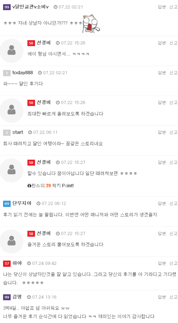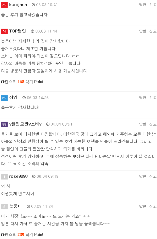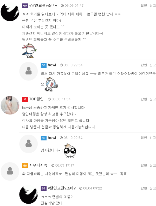 낮깨비 입니다.이힝~! 달인사장님에게 연락을 받았네요...(형님 숙제하세요~!!)눼..~!~!!! 후기 안쓴다고.... 뒤가 아직 남았죠...ㅎㅎ 뭐 딴분들 글 올리시길래 잠시 쉬었습니다... 글고 요로코롬 조용할때 싸질러야 합니…