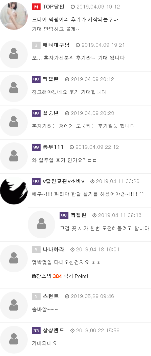 혼자가시는것을 걱정하시는 분들 및 고민중이신분들께.작게나마 결심이 도움이 되었으면 합니다. 개인적으로 한달정도 일을 쉬게되어이 휴식기간에 무엇을 할까 고민하던중 예전에 봐두었던 기억을 되살려달인사이트를 찾아보게 되었습니다. 일주일정도 같이 가실분을 구…